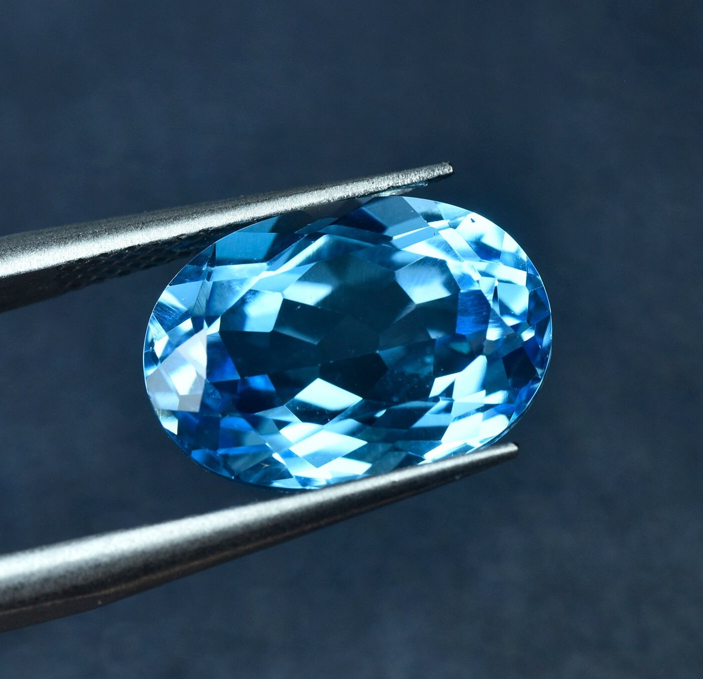 Natural Swiss Blue Topaz Loose Stone,Oval Shape Topaz Faceted Gemstone Loose,for Jewelry Making