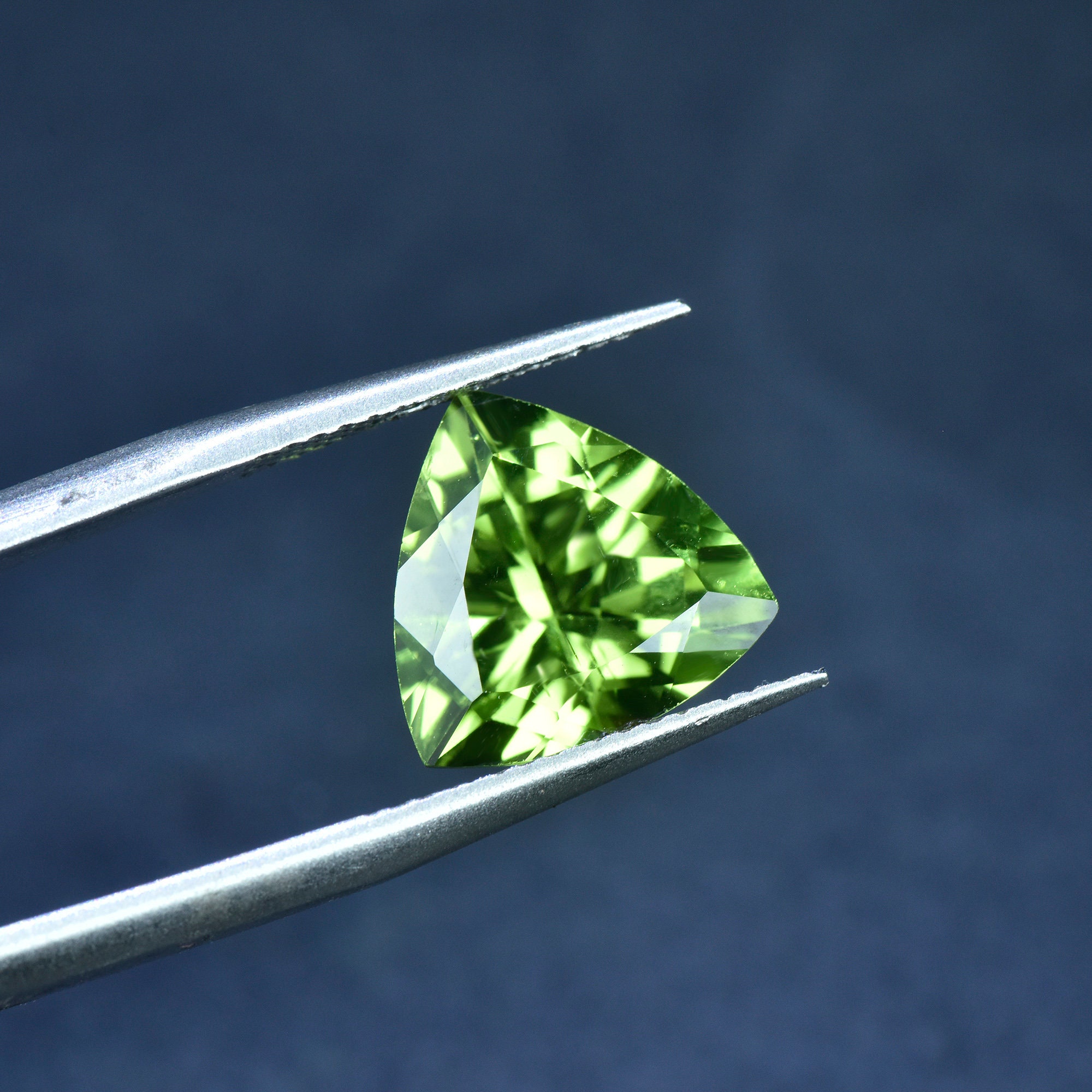 Natural Peridot Loose Stone,Trillion Shape Faceted Green Gemstone for Jewellery Making