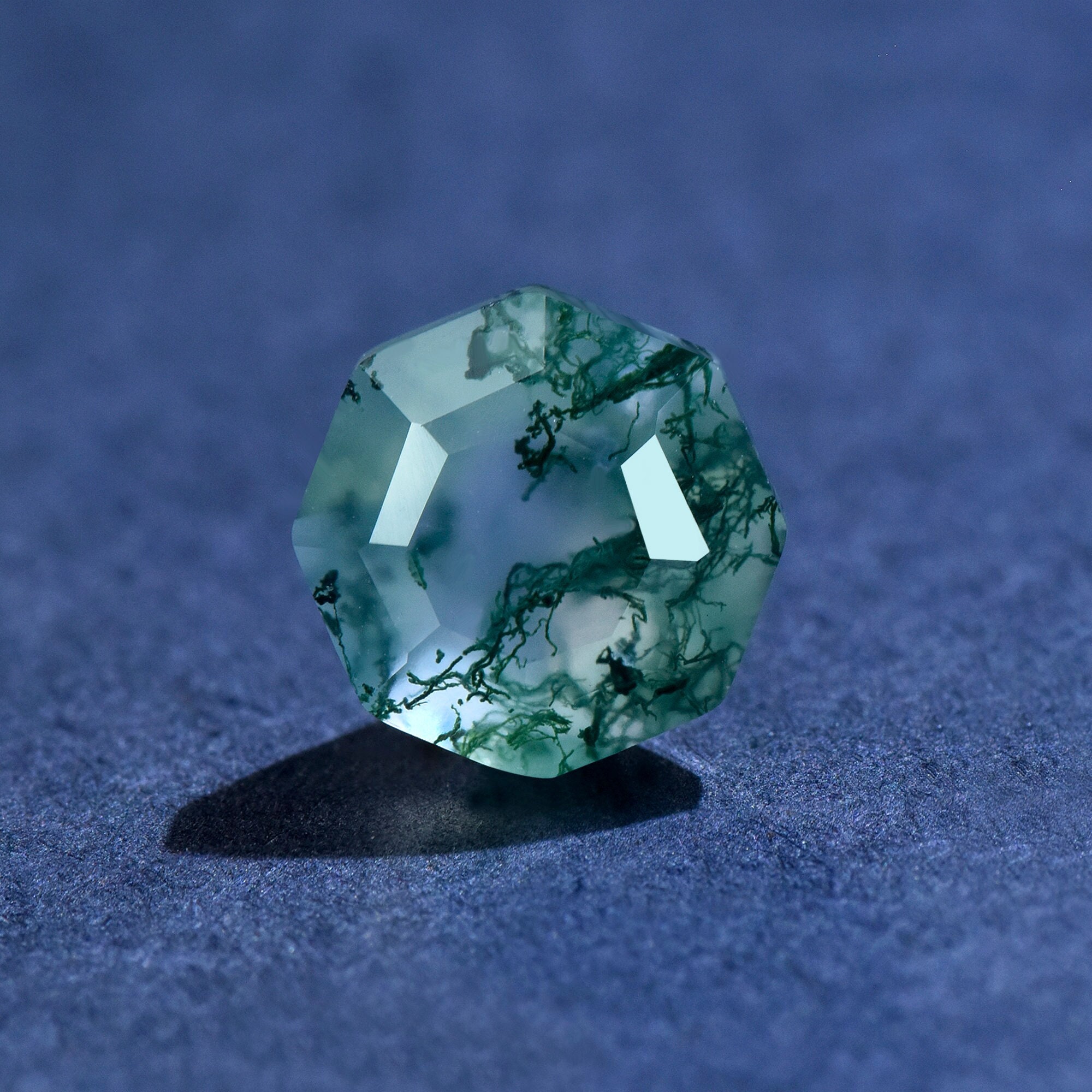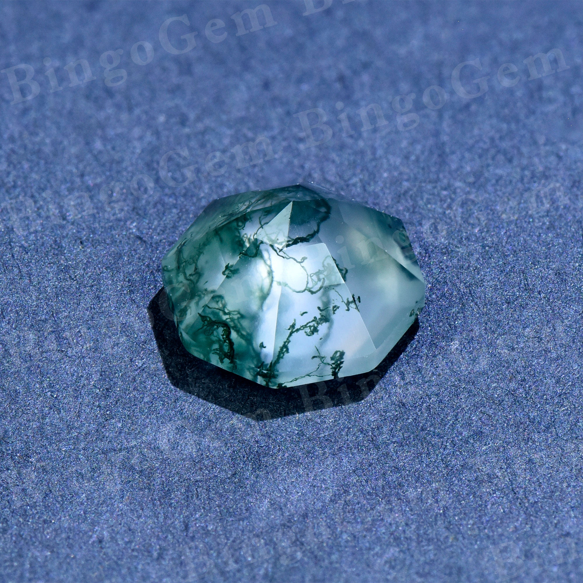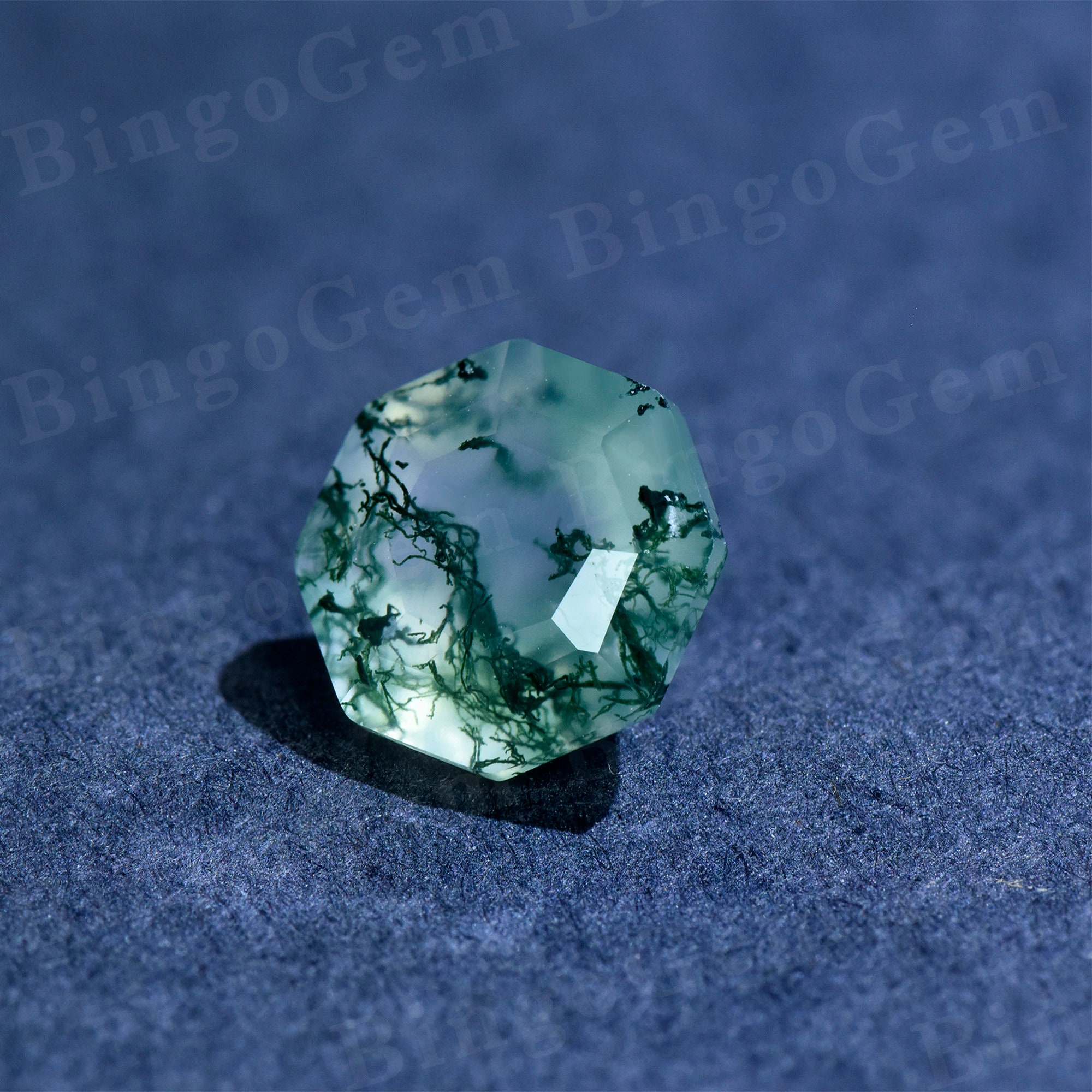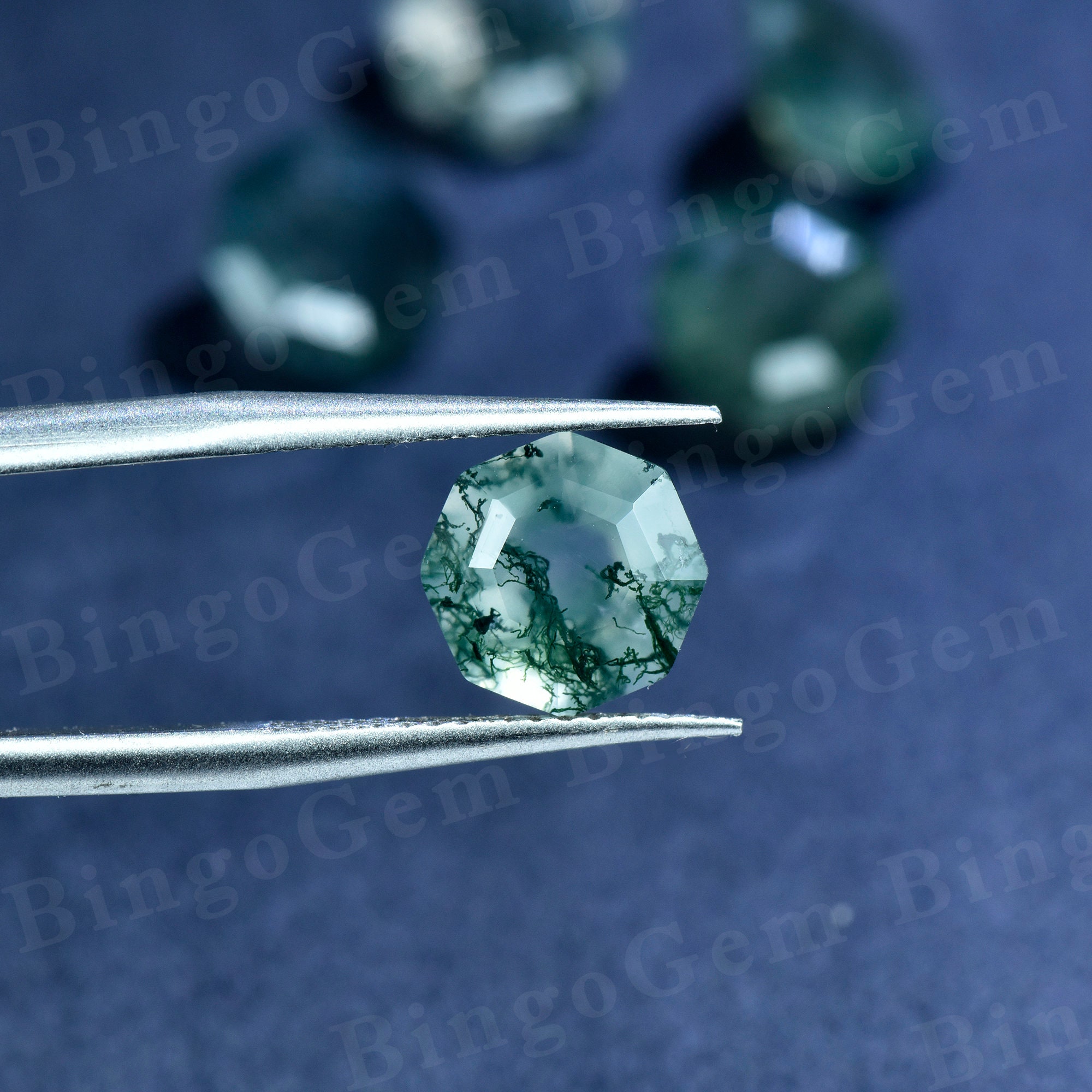 Octagon Green Moss Agate Loose Stone,Faceted Green Gemstone Loose