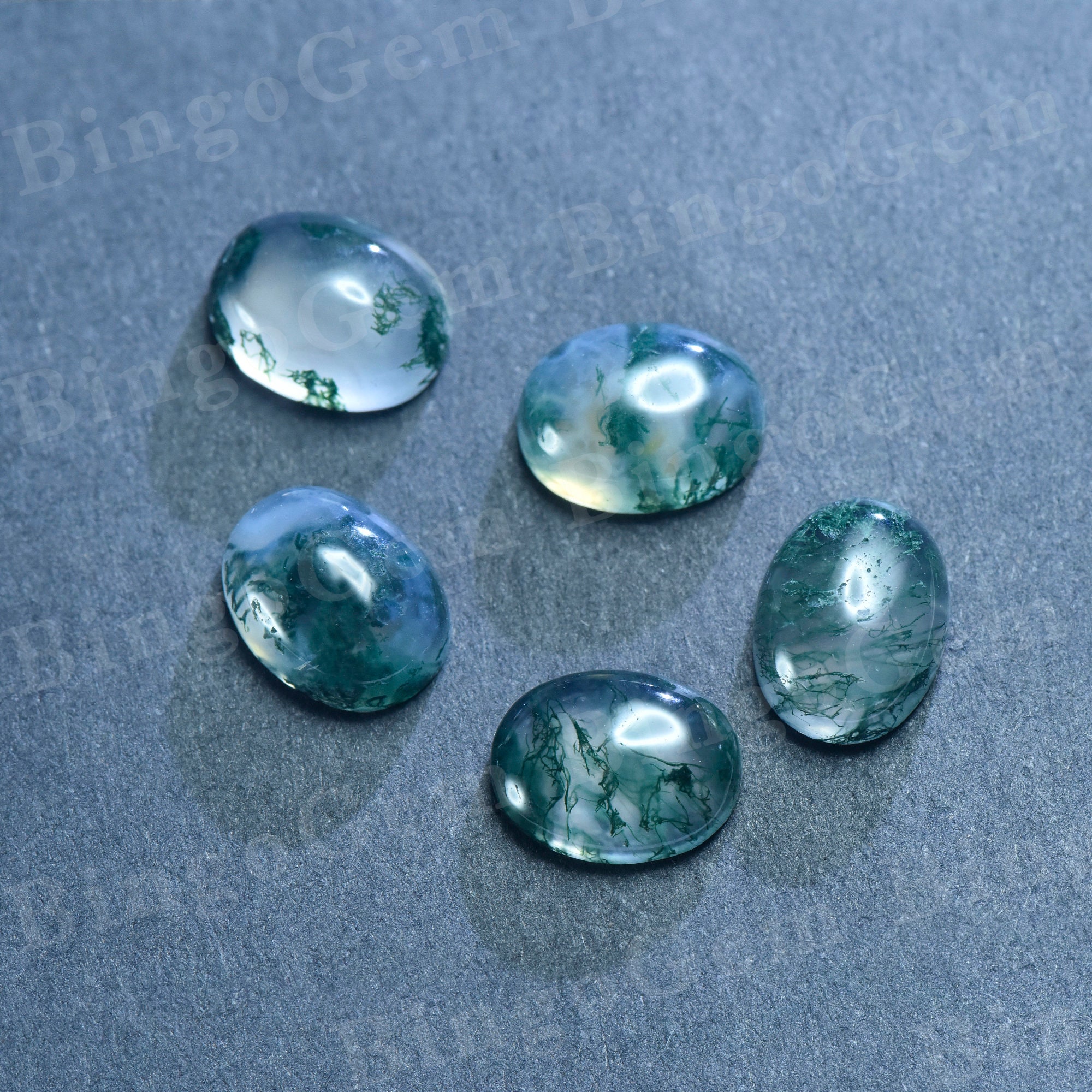 Natural Moss Agate Loose Stone,Oval Shape Cabochon Green Loose Gemstone