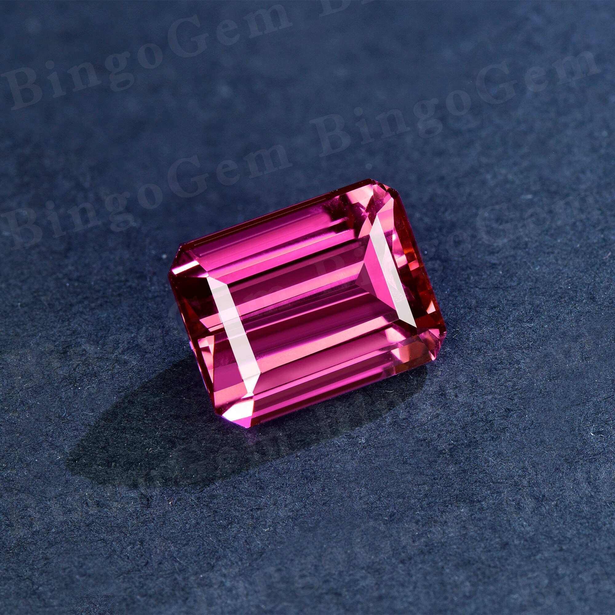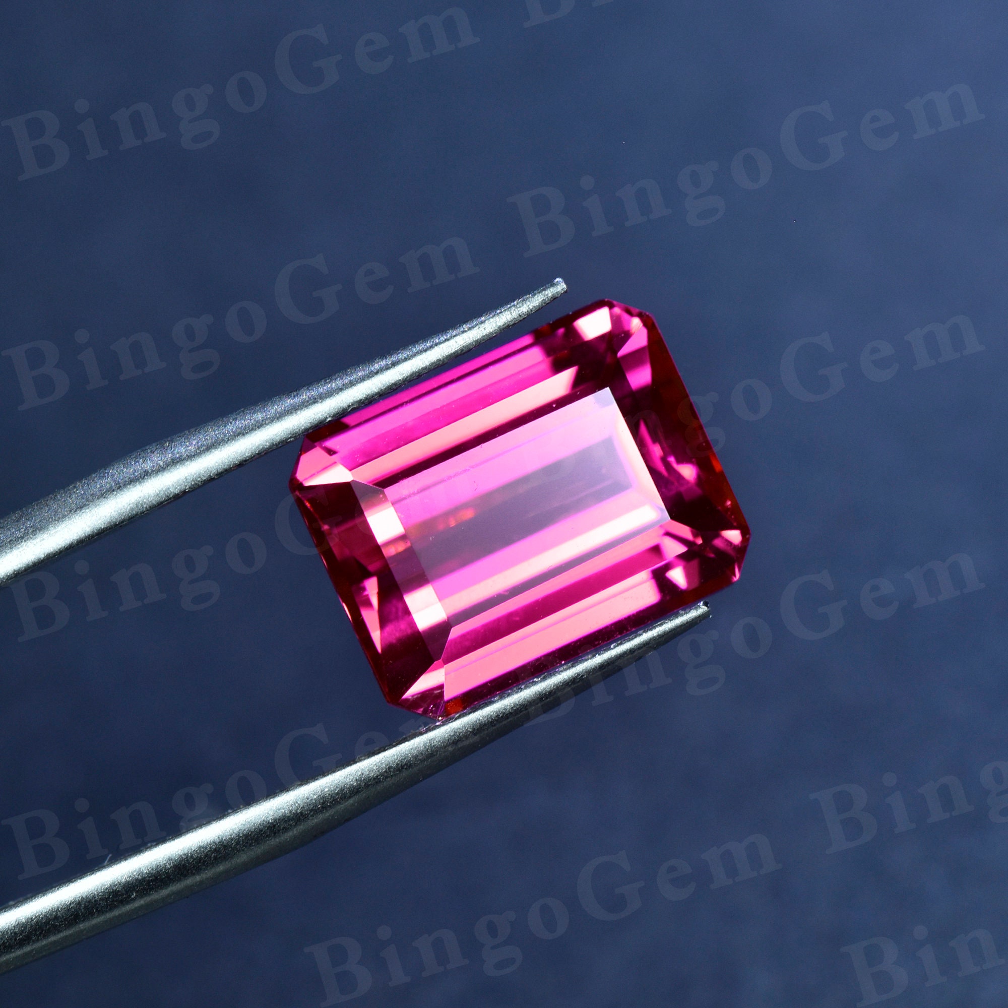 Pink Sapphire Loose Stone,Faceted Emerald Cut Lab Created Gemstone Loose