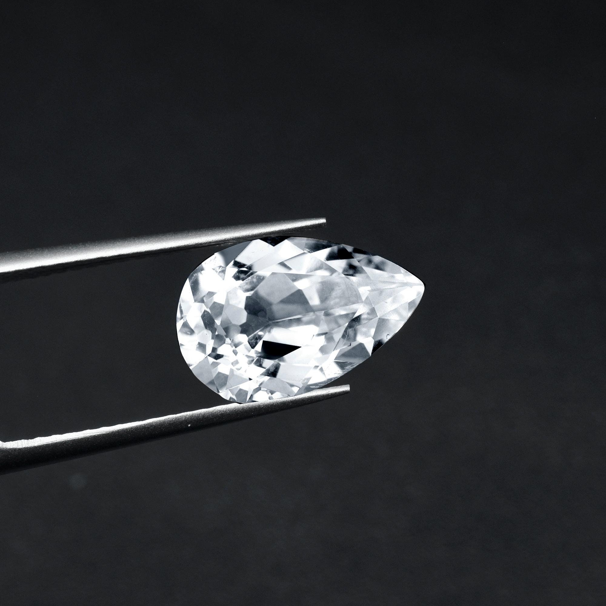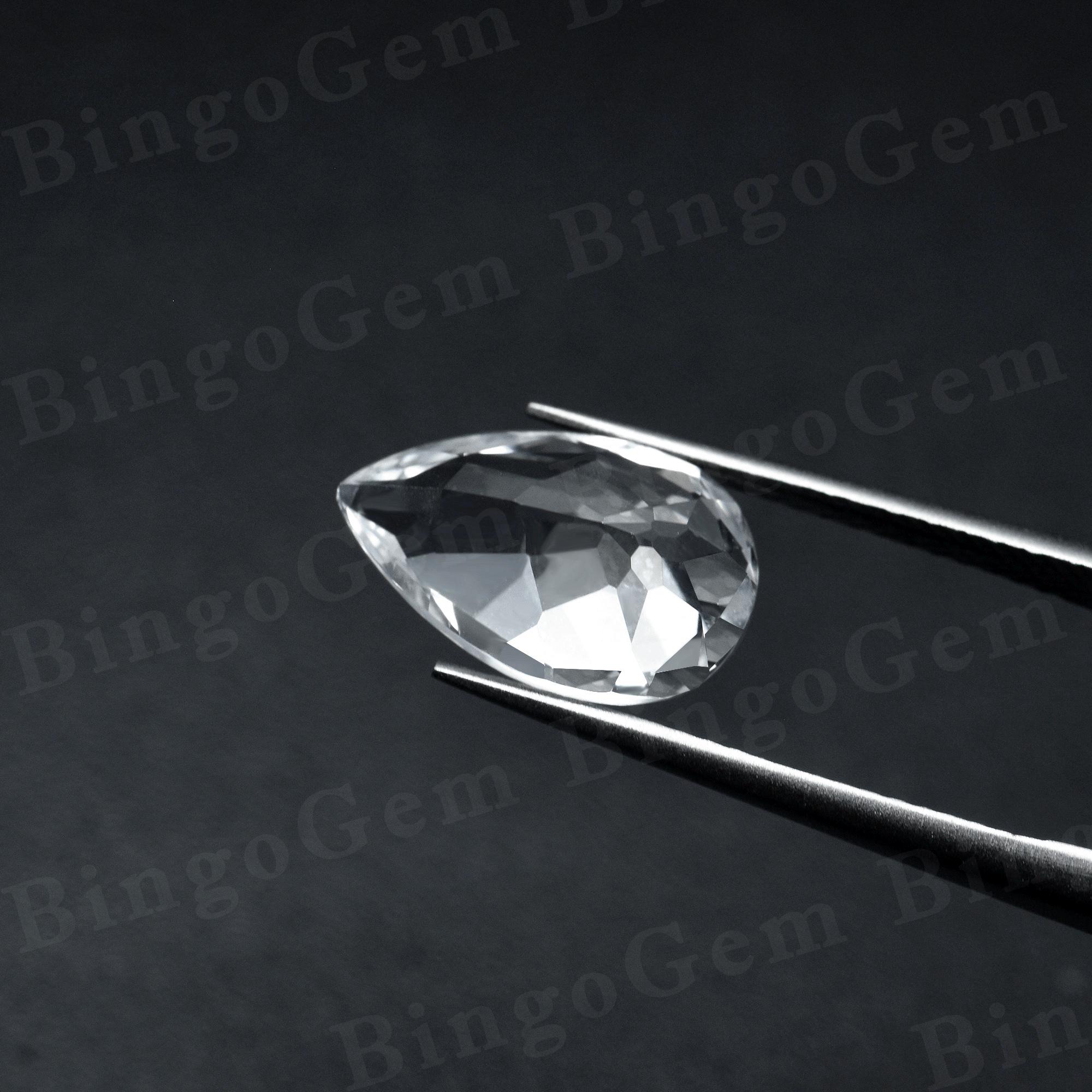 Lab Created White Sapphire Loose Stone,Faceted Pear Shape Gemstone Loose