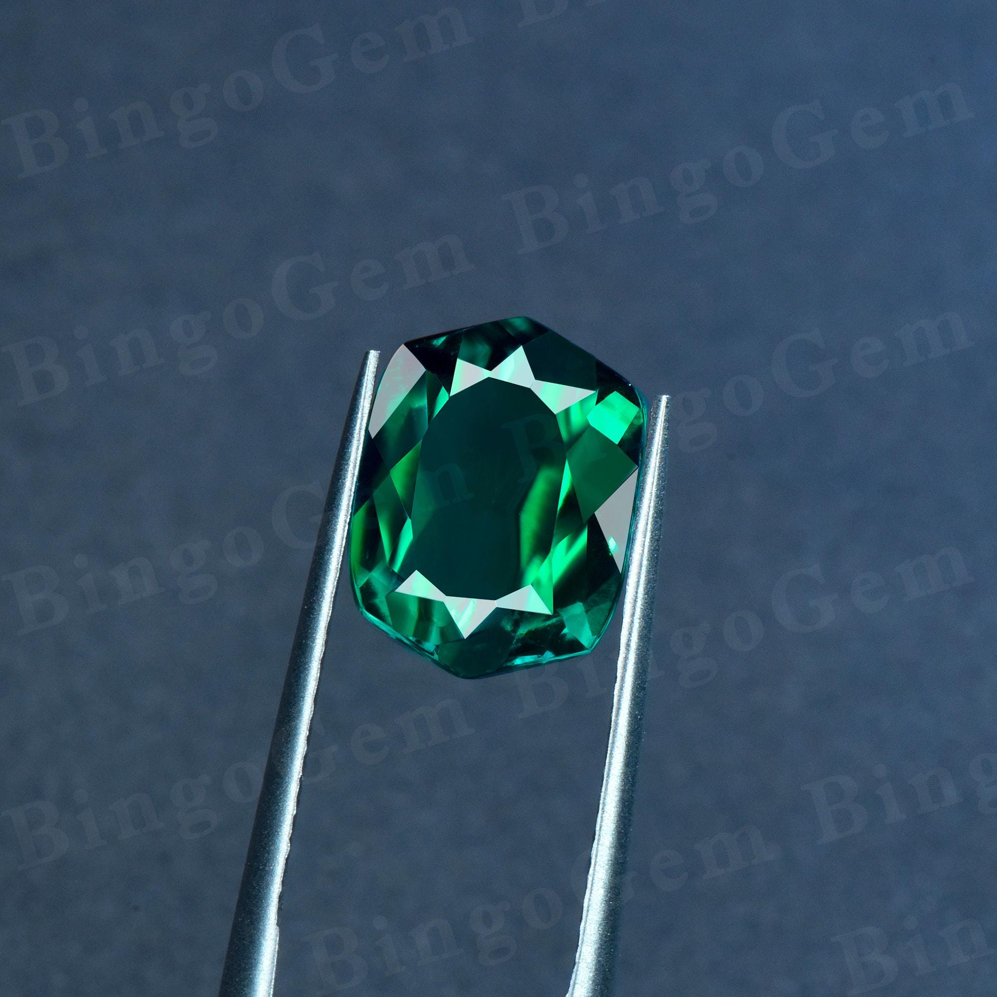 Irregular Zambia Emerald Loose Stone, Faceted Pointed Cushion Lab Created Gemstone Loose